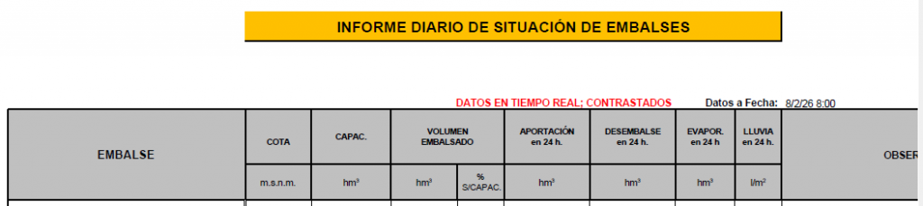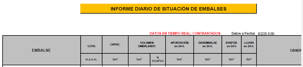 Sobre estas líneas, fragmento del parte diario de la CHG sobre los pantanos de la cuenca