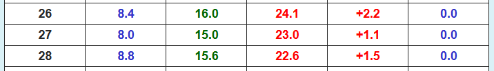 La máxima más alta, 24,4º, el día 22.