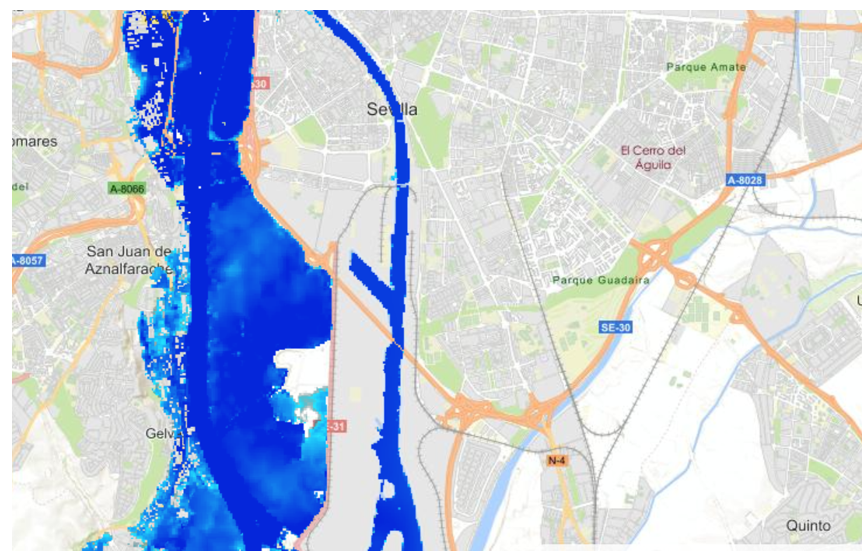 Tablada, en el mapa de peligrosidad y riesgo de inundación (T=100 años)