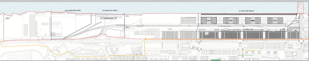 Aunque la imagen distribuida en su día por la Autoridad Portuaria se difumine al ampliarse, hay reflejados unos volúmenes que sobresalen sobre las cubiertas originales de las naves (con un lenguaje arquitectónico más moderno o acristalado) y que representan precisamente ese 40% adicional de espacio que se gana en altura sobre el patrimonio existente. Tal como vimos en una entrada anterior, se prevén demoliciones parciales en este grupo de naves.
