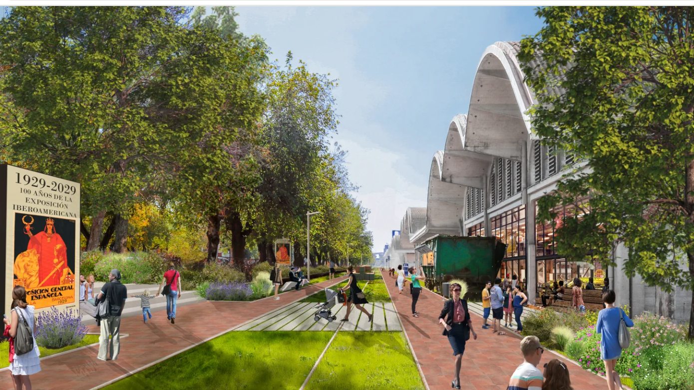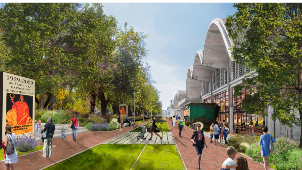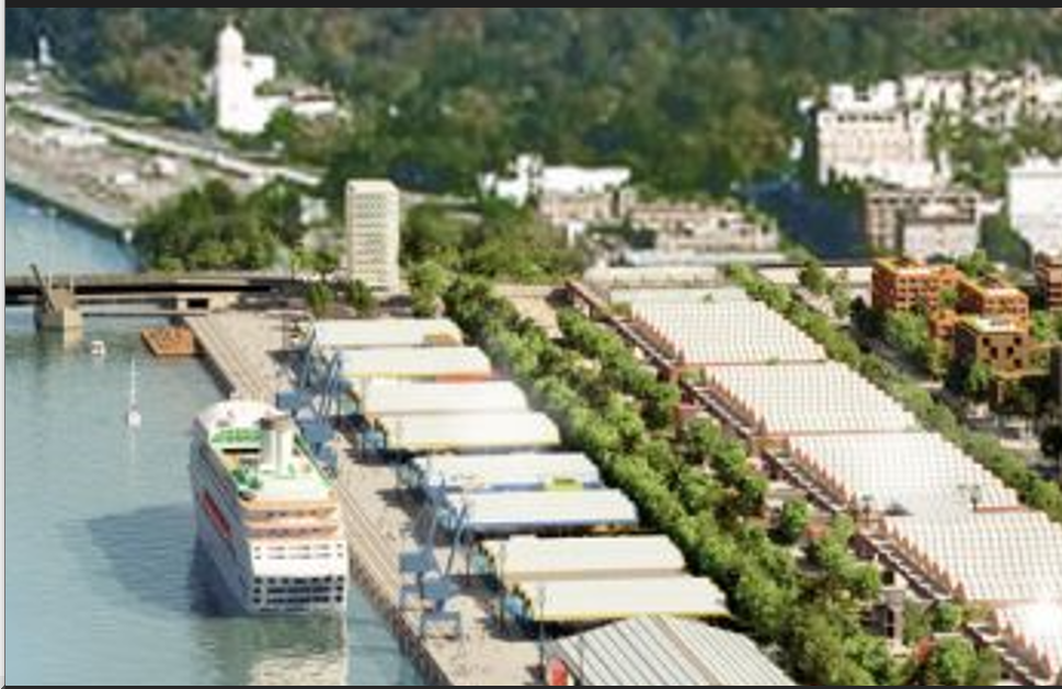 Recreación de una de las zonas de ocio del futuro Distrito Urbano Portuario