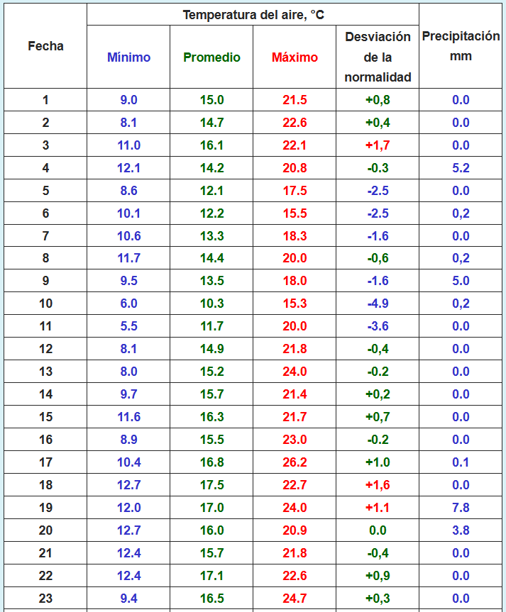 La temperatura mínima más baja (5,5 grados) se registró el día 11.