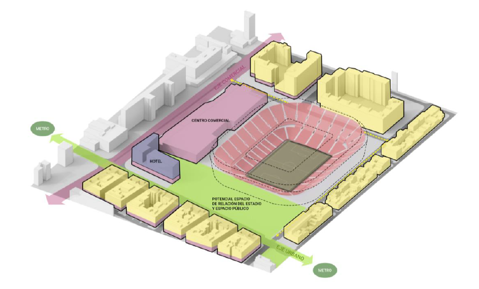 Hay coincidencia también en las ideas principales del proyecto: mantener el estadio en su ubicación actual, mejorar el espacio público alrededor, ampliar huella del edificio,